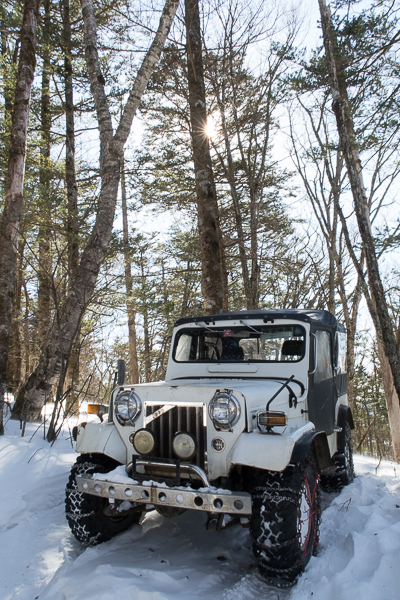 まさにその通り、狭い折り返しにジープが乗り捨てたように