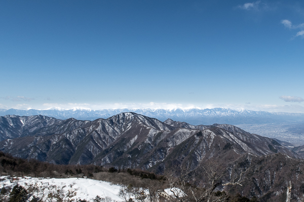 三つ峠山荘への雪原からも、後ろ髪惹かれる想いは南アルプス
