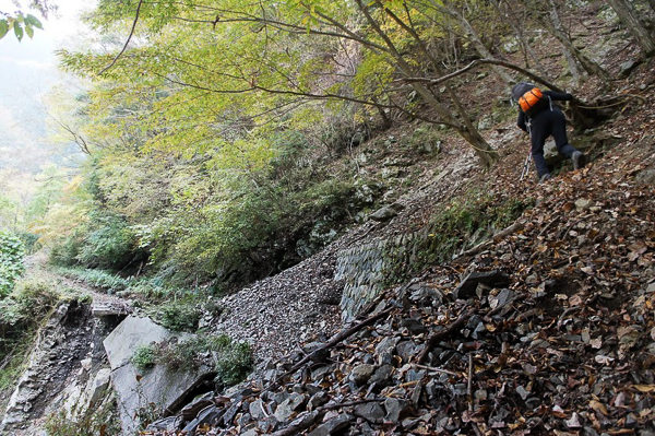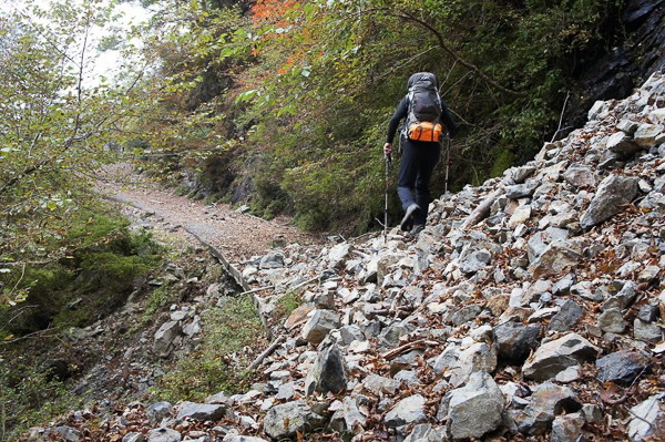 復旧工事中の林道ドライブ、さらに崩落寸前の高巻き、落石群・・・