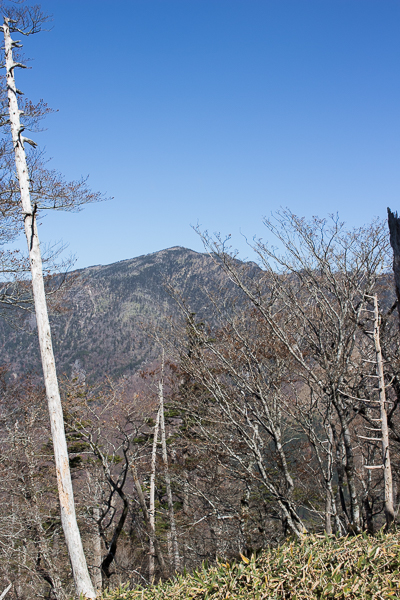 ときおり樹林の合間から望む明星ヶ岳と神仙平