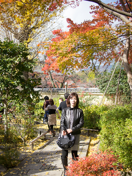 何かの撮影隊に向かって行くヨメさんの手を取って紅葉の神社へと引っ張る