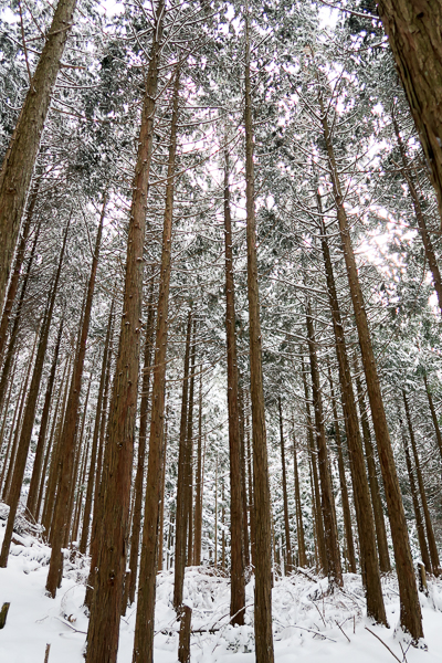 杉の植林も、その合間から挿しこむ冬の光は何だか懐かしい