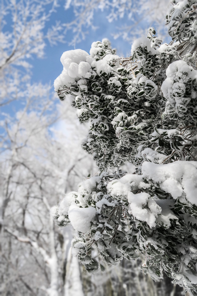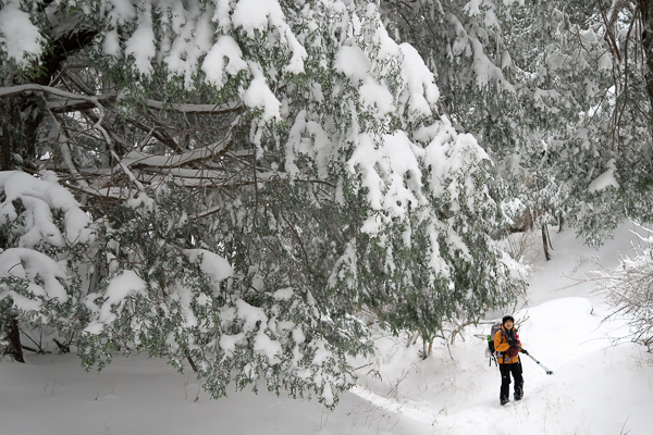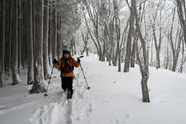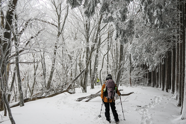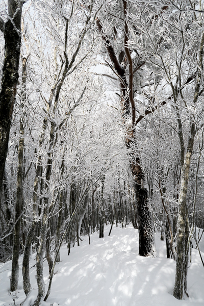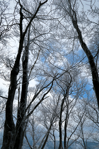 背の高い樹林帯は薄らと霧氷が着いて美しい