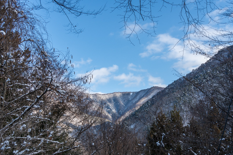 奥多摩エリアは車も少なく、丹波山村の駐車場は一面の雪に