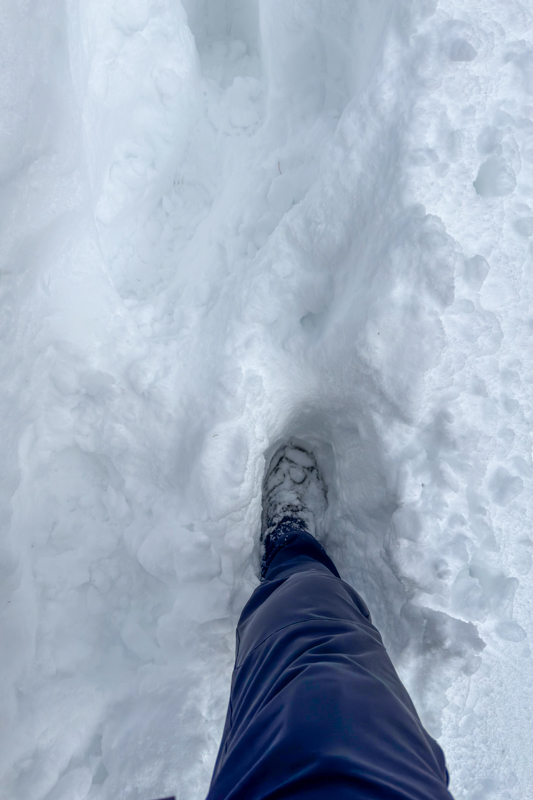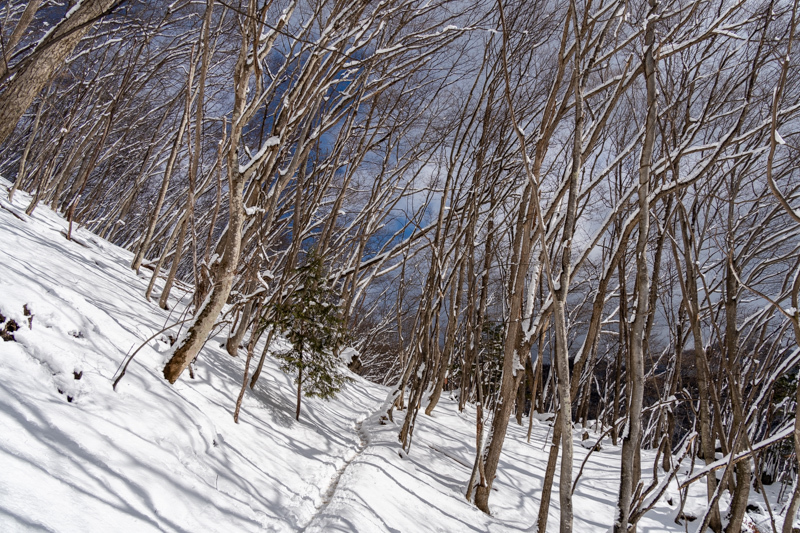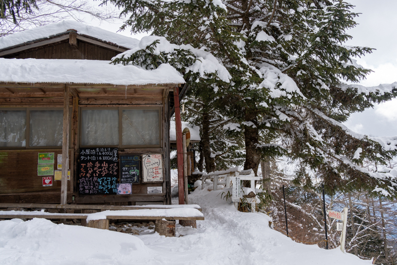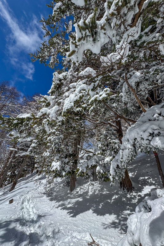 雪に埋もれたような七ツ石小屋を過ぎて、九十九折れに入ると一気に雪深くなった