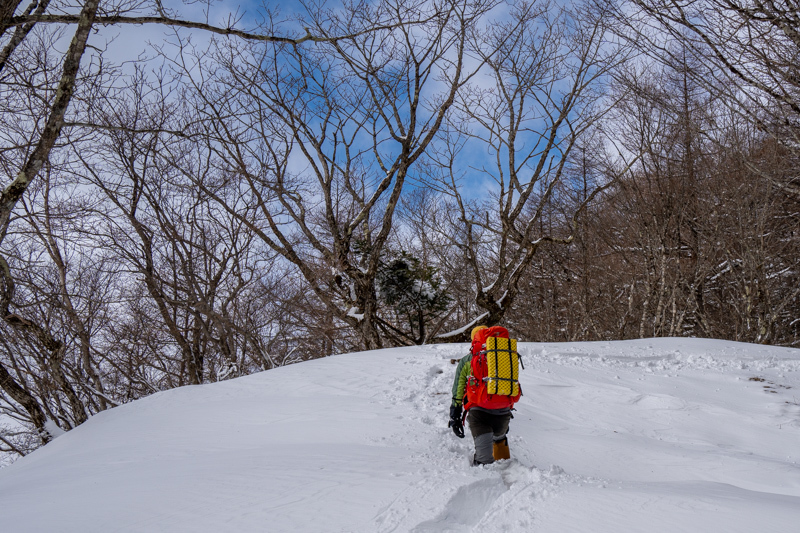 前を行くテン泊装備の男性が悪戦苦闘しているラッセルを交代する