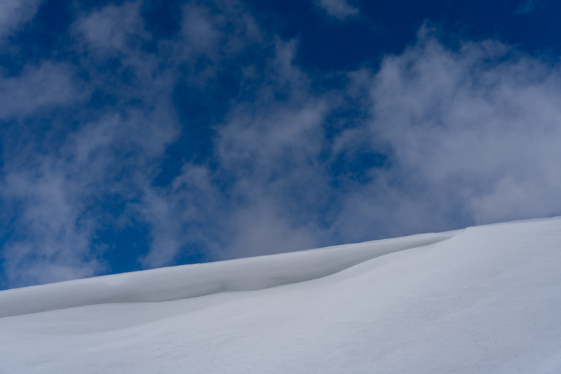 後ろ髪惹かれる思いで下山を始めると、ちょっとした吹雪となり
