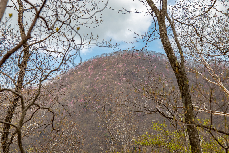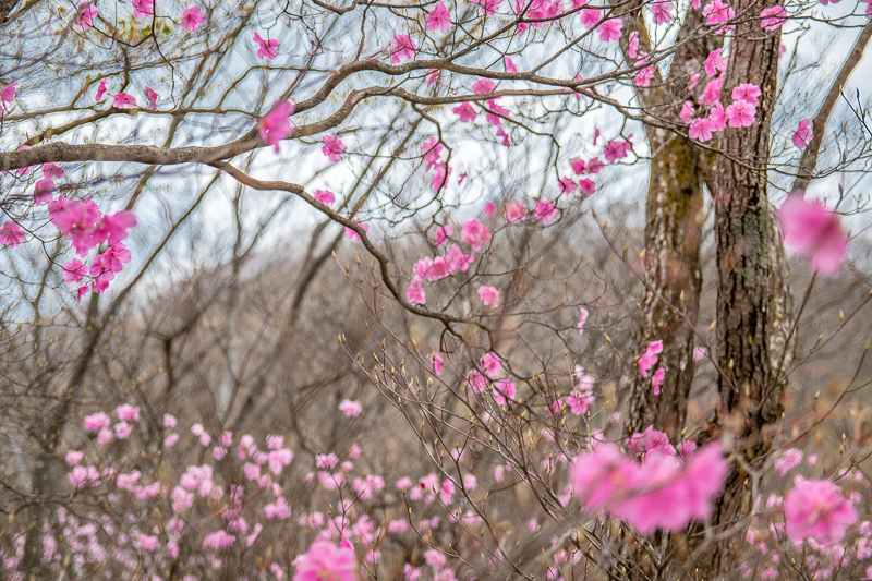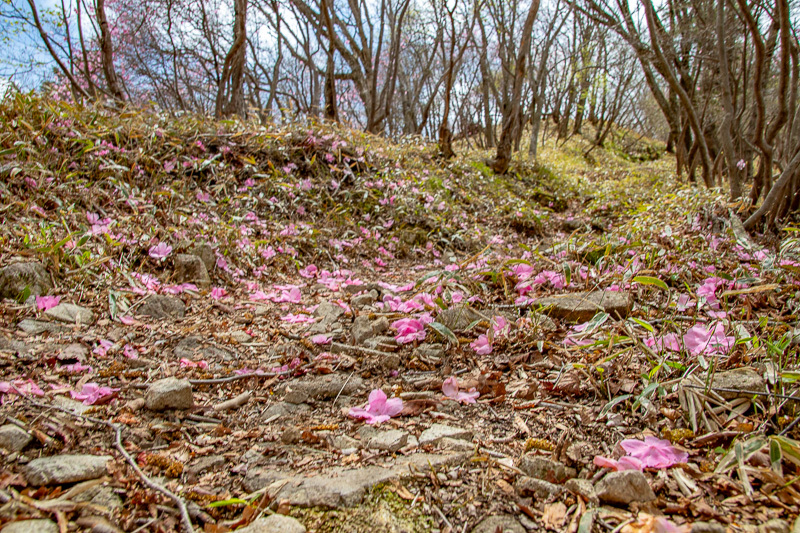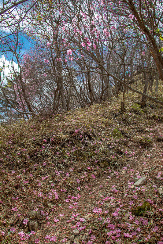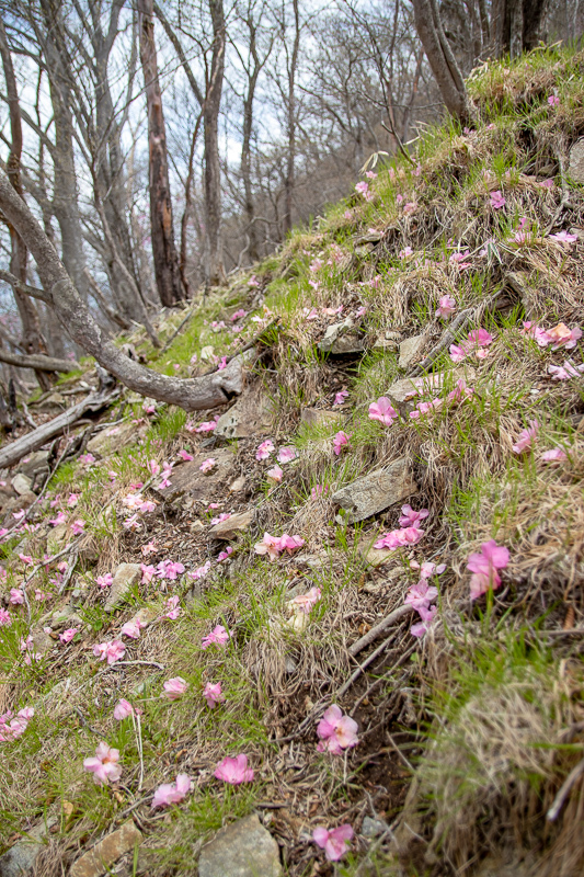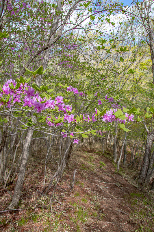 トレイルは、徐々に登りとなり、気付くとアカヤシオに囲まれていた