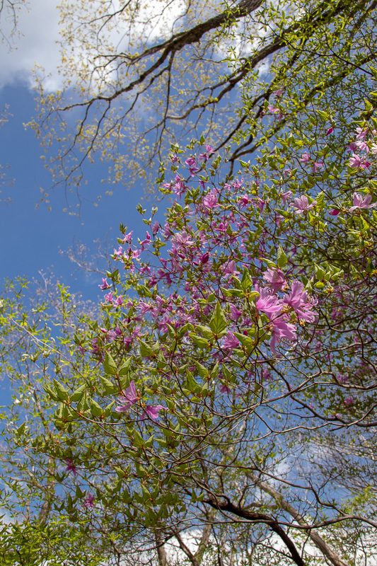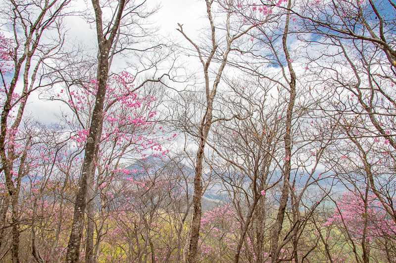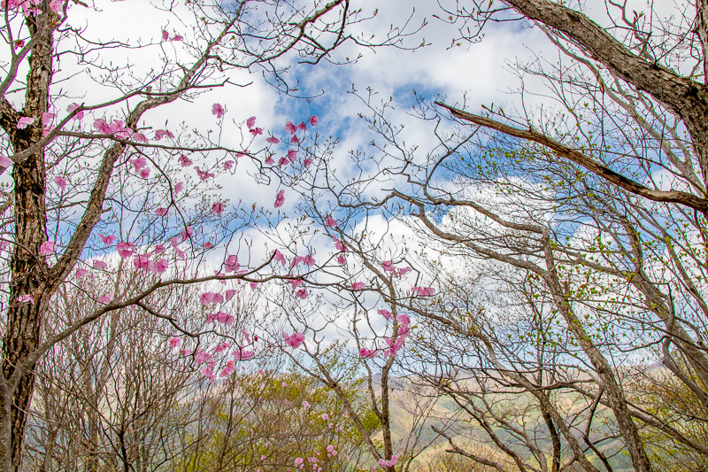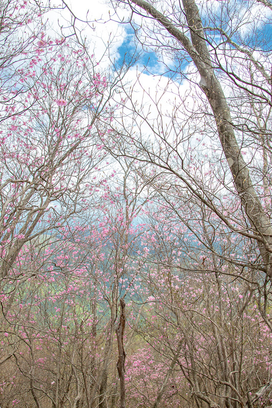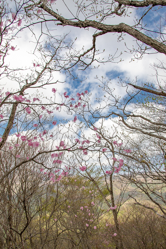 何度も立ち止まっては、アカヤシオを仰ぎ