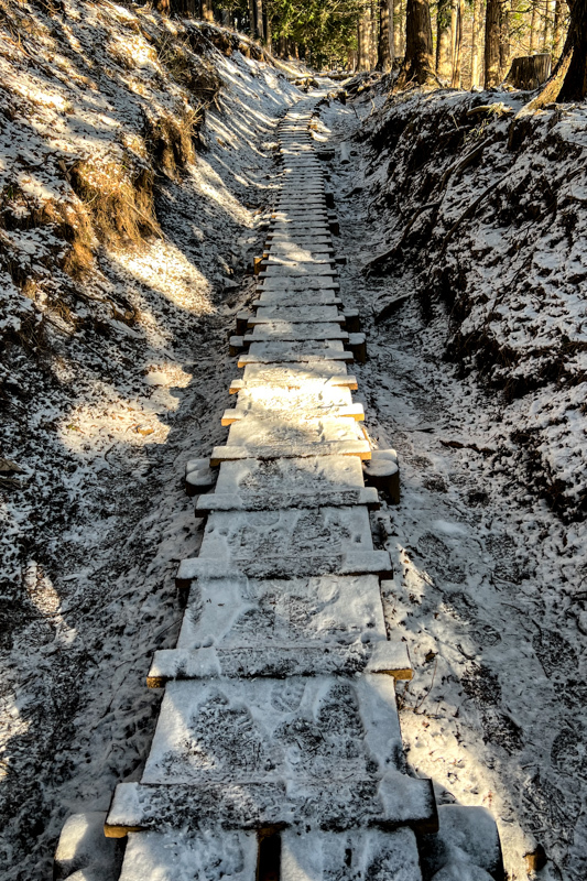 見晴茶屋から先の木道は凍り付いていてツルっつるだ