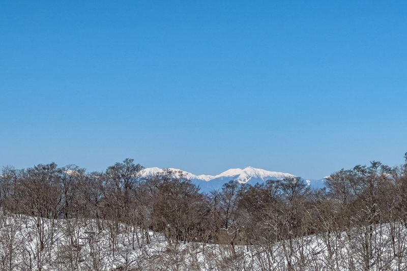 この素晴らしき青空と雪を被った山稜の美しさ!