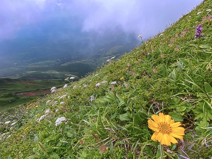 で、同じように垂直に湧き立つ雲や南斜面の一面のお花畑が記憶にあり、懐かしい思いで拝見させて頂きました。