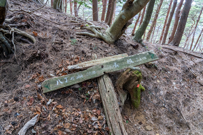 朽ちかけた道標が稜線までの中間あたり