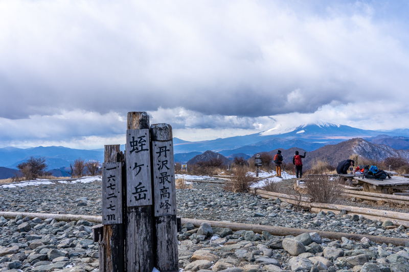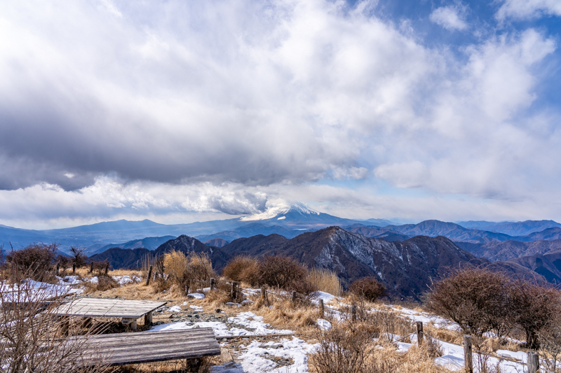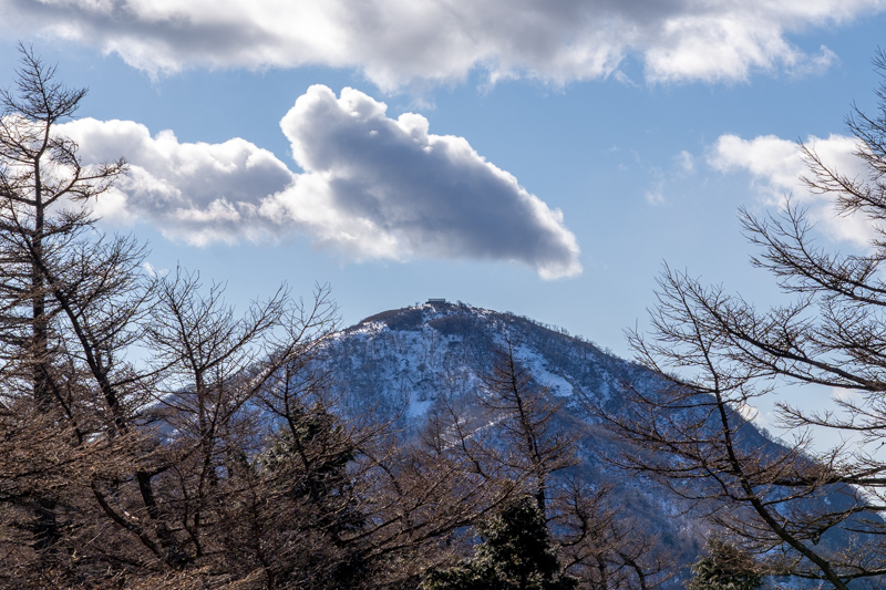 ベンチから見上げる蛭ヶ岳も雪雲がかかりそう