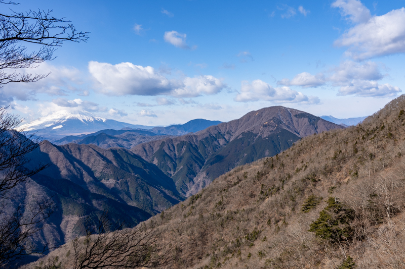 ときおり樹林の合間から奥多摩方向の稜線が見えるのが嬉しい