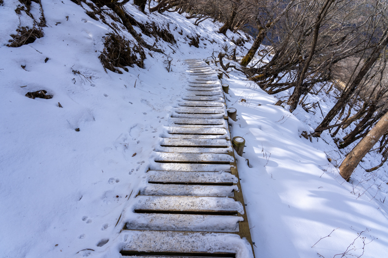 地蔵平を過ぎると日陰の斜面に雪