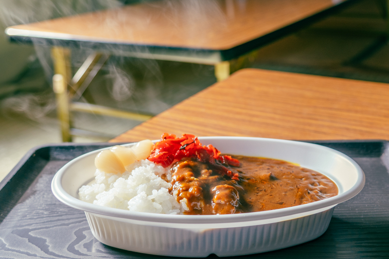 プラ皿にレトルトカレー、しかもヒルというネーミングは