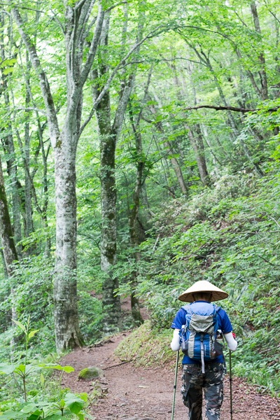 まだ頼りない足取りでブナ林の中、アップダウンを繰り返すこと90分