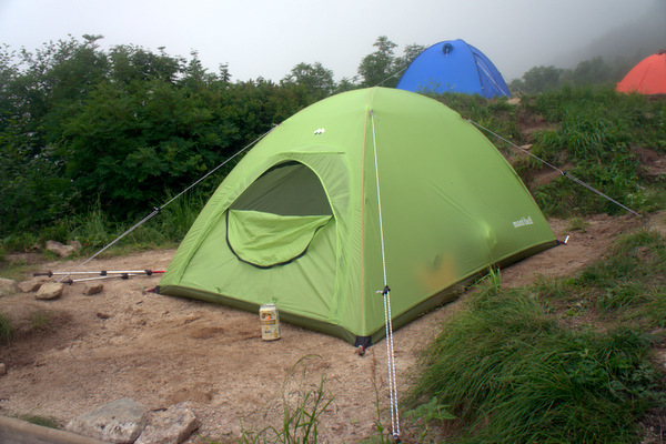 長い長い登りを終えて、やっとこさテント張って、さぁさぁ、さぁ
