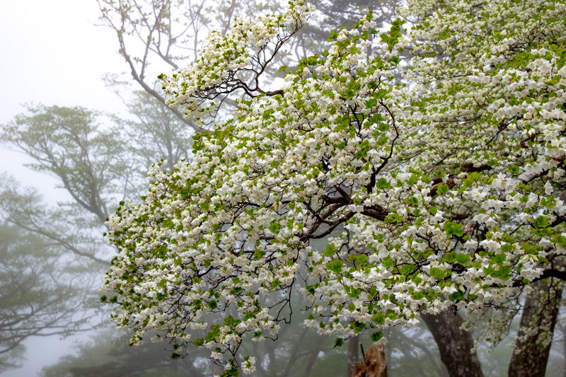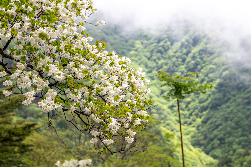 シロヤシオ咲く頃に 霧雨の行者還岳