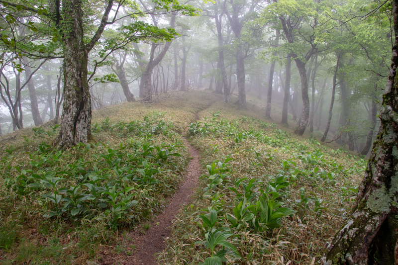 大峰は本当にガス、小雨が似合う山なので、特に花の季節は