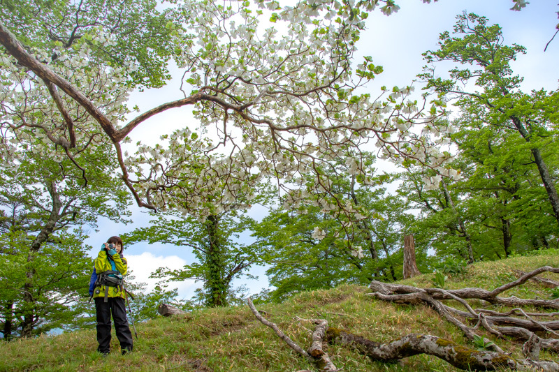 せっかくの満開のシロヤシオ、強風でカメラに撮ることも出来ず先へ急ぐ