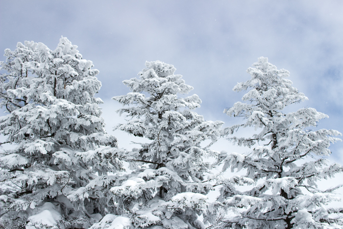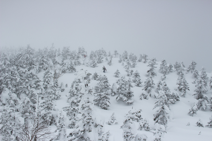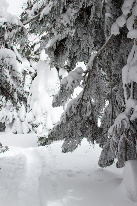 モンスターには程遠いが、厚い雪を纏った樹林を縫って