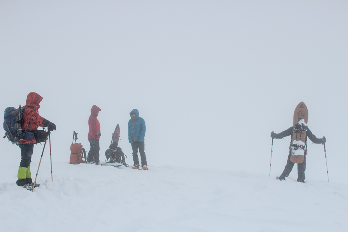 スノーシューを装着する指先も凍えそうだ