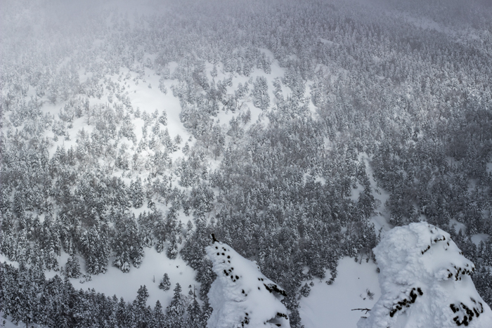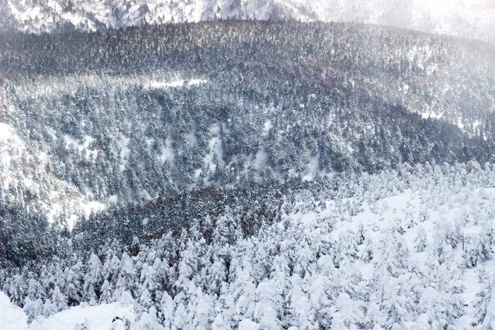 それでも、まだ雪を纏った樹林が視界一面に広がる姿