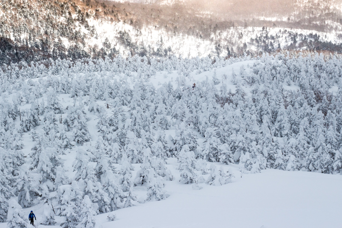 ゲレンデからトレースを追って樹林へ入る