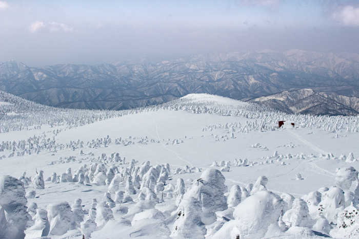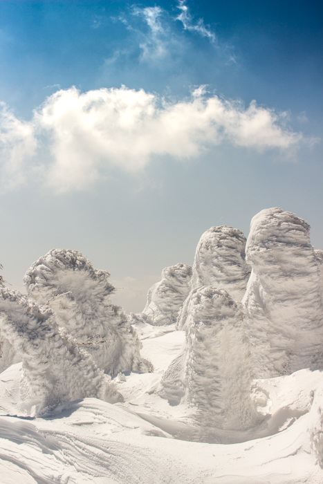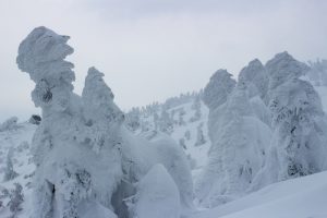 ロープウェイで一気に高原駅に上がると、そこは真っ白な世界