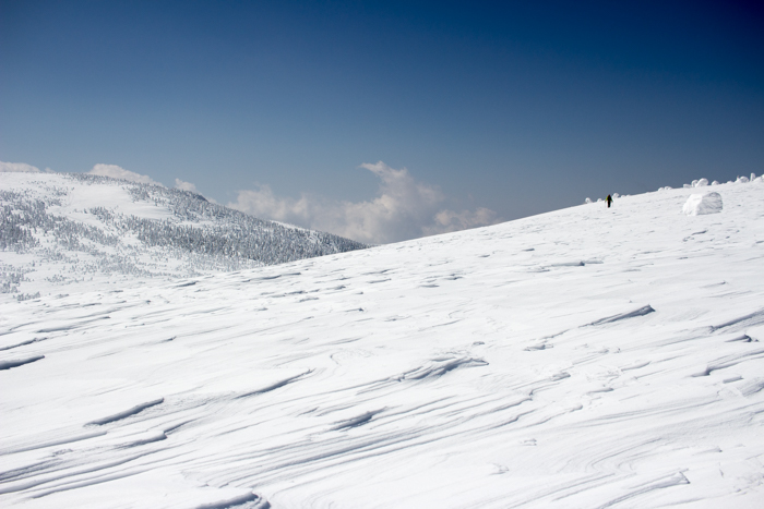 そのまま西吾妻山へ登るのも、もったいない、少し雪原を歩こう