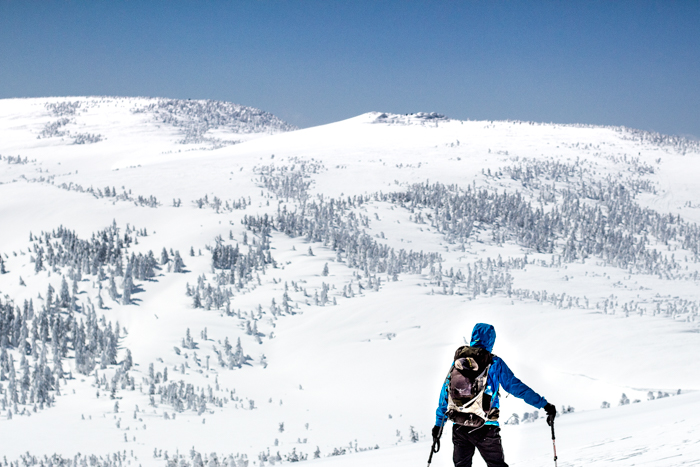 やっと数人すれ違う程度のBCスキーヤーたちのウェアが