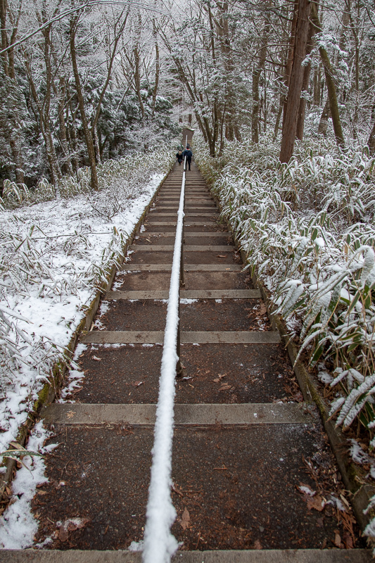 それでも、いつの間にか霧氷に囲まれた参道歩きにご機嫌さん