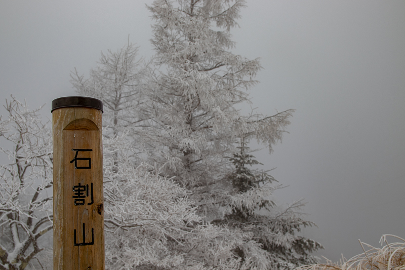 最後の最後に、霧氷越しの富士山が、ほんのちらっと見えた