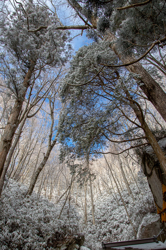 パワースポットでお参りして、こんな綺麗な霧氷の中歩けて