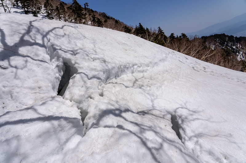 少しだけ会話すると、この尾根は踏み抜きがひどくて午後に歩くのは危険だとか