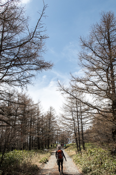 カラマツ林を縫って下ると、視界が広がる
