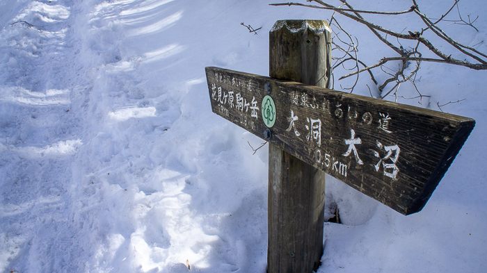 東京都ナンバーが大半を占めている駐車場から出発、登山口でアイゼンをサクッと着けて