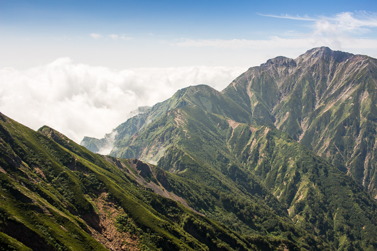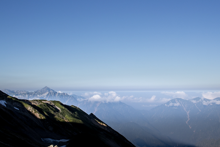 朝のクリアな空から、もう雲が湧き、剱岳も見えなくなった