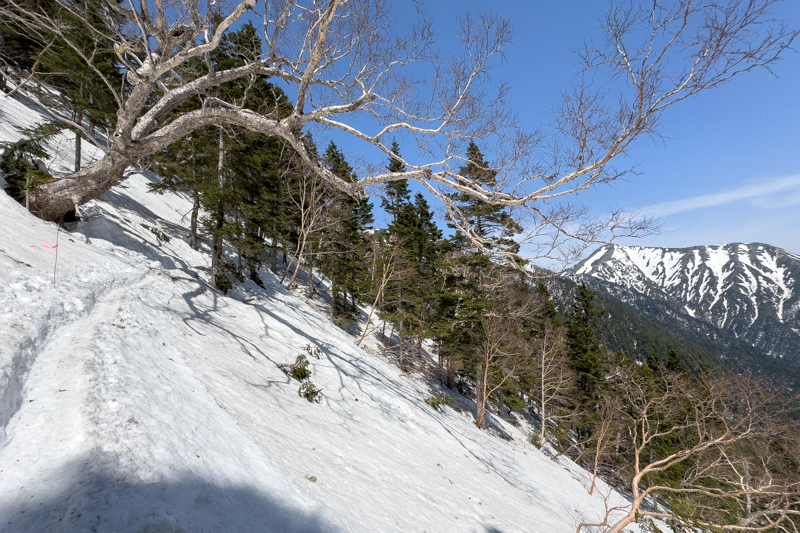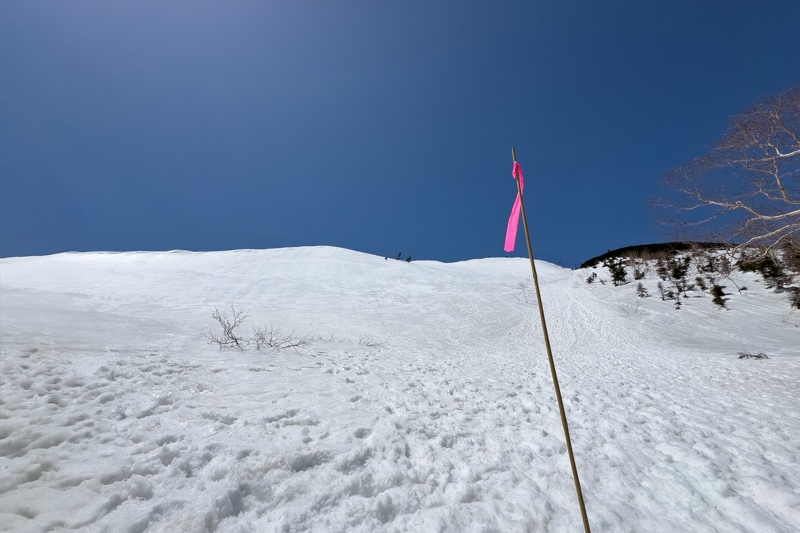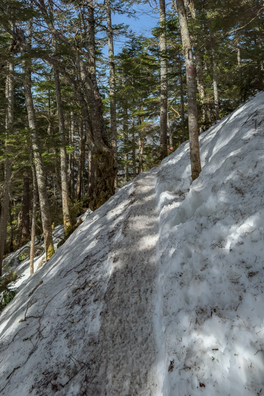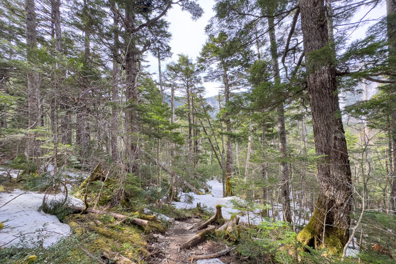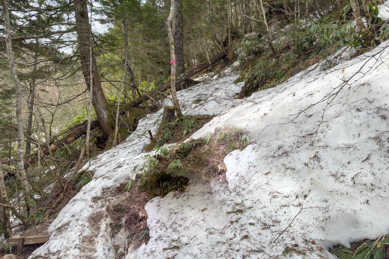 ゴジラを過ぎると事前情報のとおり残雪が目立ち始める