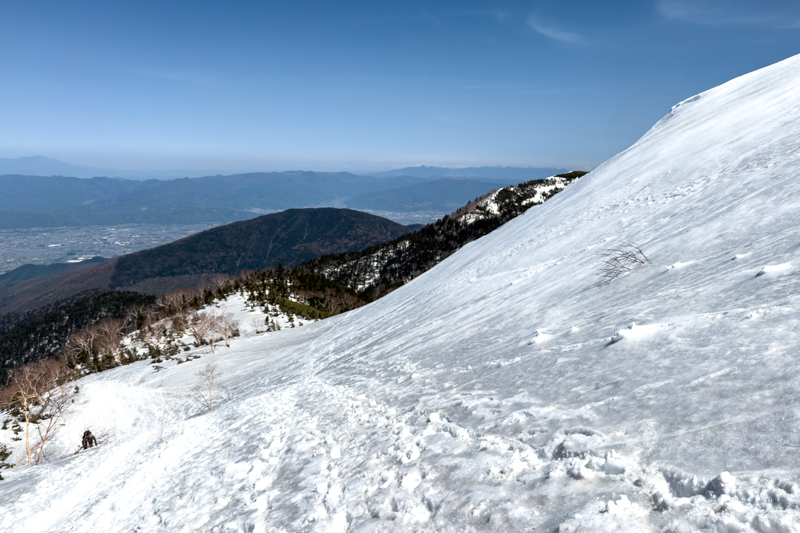 その先は直登となり、汗をかきながらアイゼンを効かせて詰めて行く