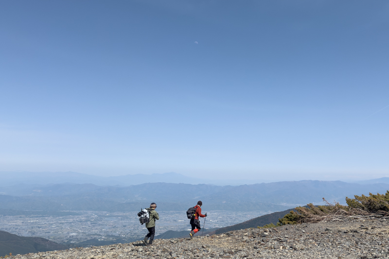 稜線の東側は穂高からの風が遮られ、再びナツヤマな気温に汗をかく