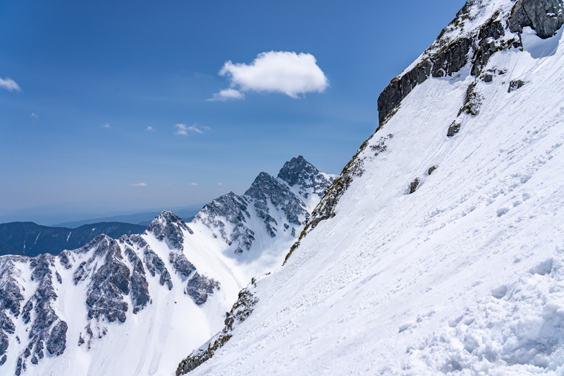 鳥も飛ばない滝谷、バックに笠ヶ岳