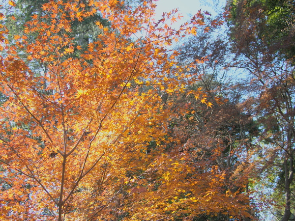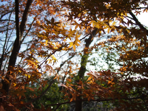 まだ紅葉も残ってて、残秋の陽射しに輝いている