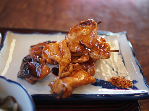 つやっ、つやな照り具合の焼き鳥は、生後40日以内の雛鳥にこだわってるそうだ