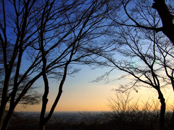 お茶屋さんの駐車場で、関東平野が残秋の夕陽に染まるのを一人眺めていた
