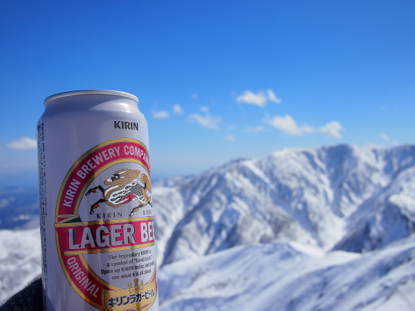 白銀に輝くゲレンデでキンキンに冷えた缶ビアを空ける