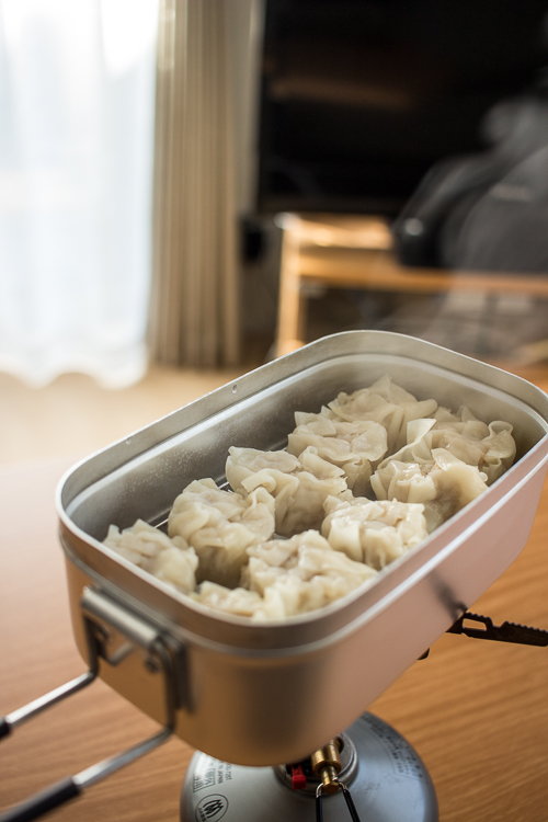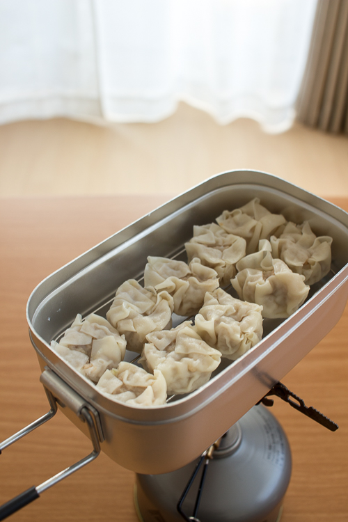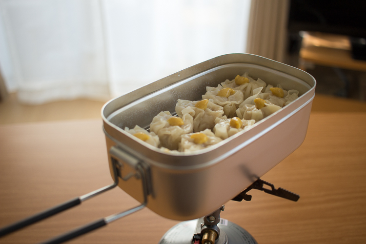 今日の山ごはん メスティン100円シュウマイ