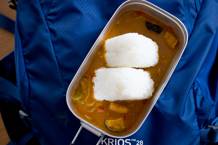 おにぎりの上にカレーを「ぶっかけ」しようかと
